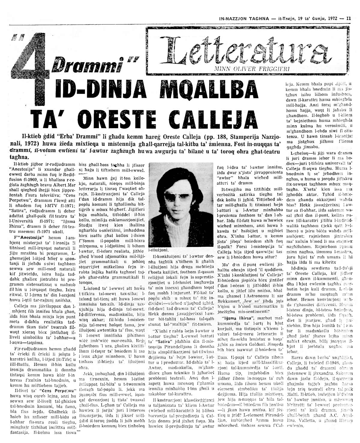 Id-dinja sewdiena tad-dubji ta' Oreste Calleja, kif jidher