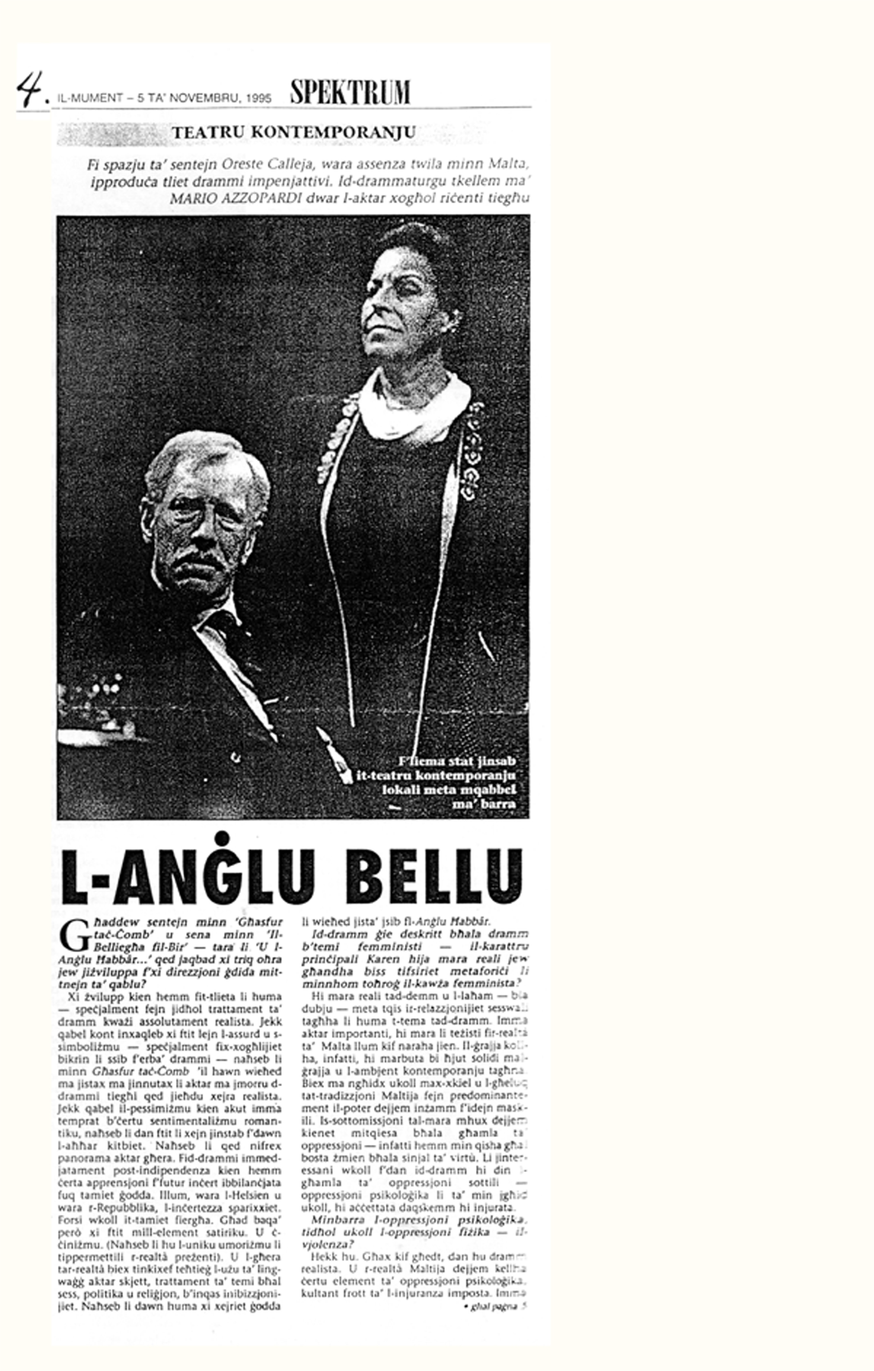 "U l-ANĠLU ĦABBAR" ... IL-MUMENT, 5 ta' Novembru l996 SPEKTRUM - Teatru Kontemporanju