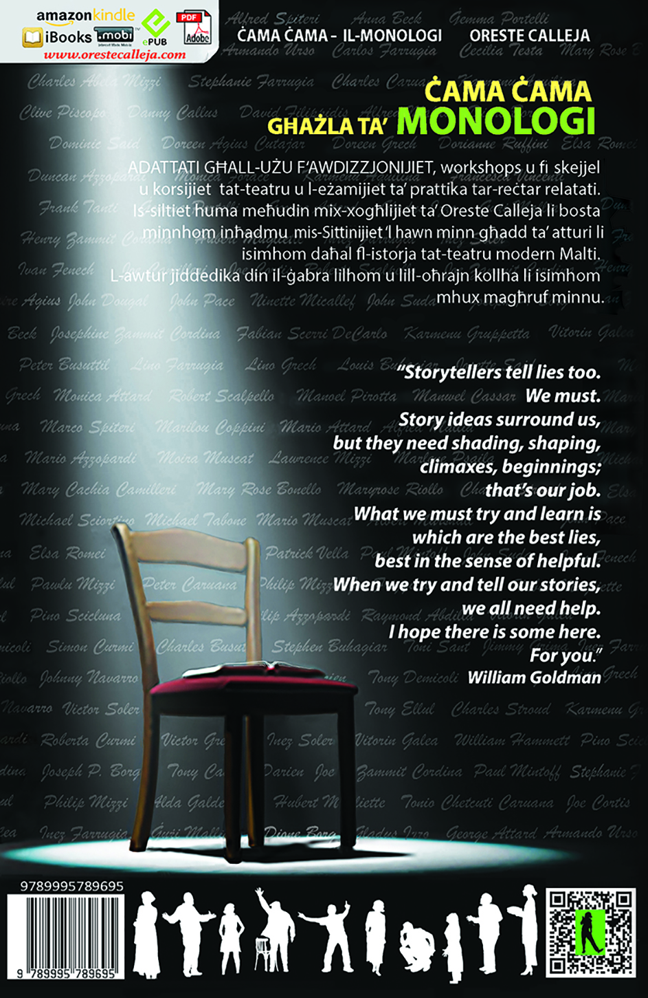 Meta titqies iż-żieda ta' opportunitajiet għall-atturi u d-domanda li hawn fil-midja għal awdizzjonijiet biex jintgħażlu l-aħjar atturi, kif ukoll l-għadd dejjem akbar ta' skejjel u korsijiet tat-teatru u l-eżamijiet ta' prattika tar-r eċtar relatati, naħseb li din il-ġabra ta' monologi tista' tipprovdi xi ftit materjal meħtieġ biex jissodisfa d-domanda. Nittama li dawk li jagħmlu użu minn dan il-materjal ikunu jistgħu jiċċamaw monologu li jiftaħilhom il-bieb għal xogħol ta' fejda fit-teatru jew f'xi aspett ieħor ta' xogħol ta' drama.U fl-aħħar, imma żgur mhux l-inqas, jalla jservi wkoll biex wieħed jiftakar li d-drammaturgi kontemporanji Maltin għadhom ma sparixxewx għalkollox. Minkejja x-xniegħat persistenti u mhux għalkollox esaġerati tal-mewta prematura tagħhom.