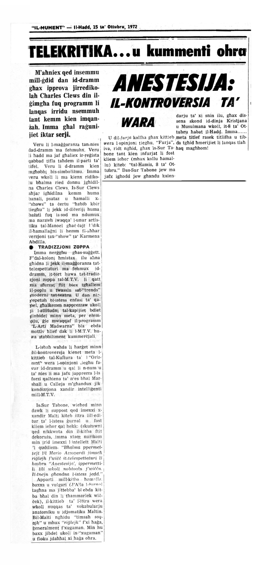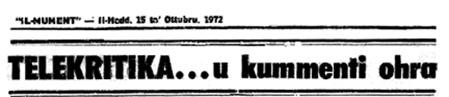 IL-MUMENT, Il-Ħadd 15 ta’ Ottubru 1972