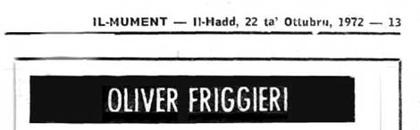 OLIVER FRIGGIERI IL-MUMENT, Il-Ħadd 22 ta’ Ottubru 1972