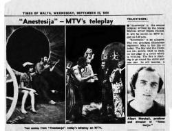 numru 522, Żgur pero li ħadd ma stenna r-reazzjoni qawwija li kien hemm wara li d-dramm ġie adattat u mxandar mill-MTV, taħt id-direzzjoni ta' Albert Marshall. ANESTESIJA fuq it-televiźjoni MTV SETTEMBRU 1972"Territorju ġdid għall-MTV..."