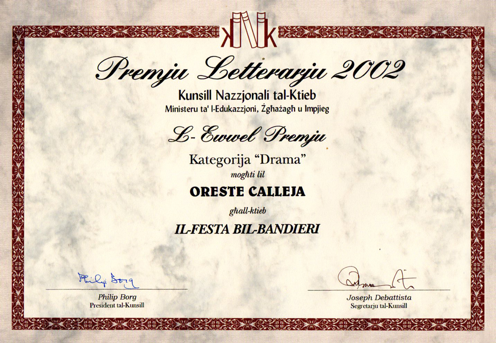1991, he has written and published three other plays, Għasfur taċ-Ċomb