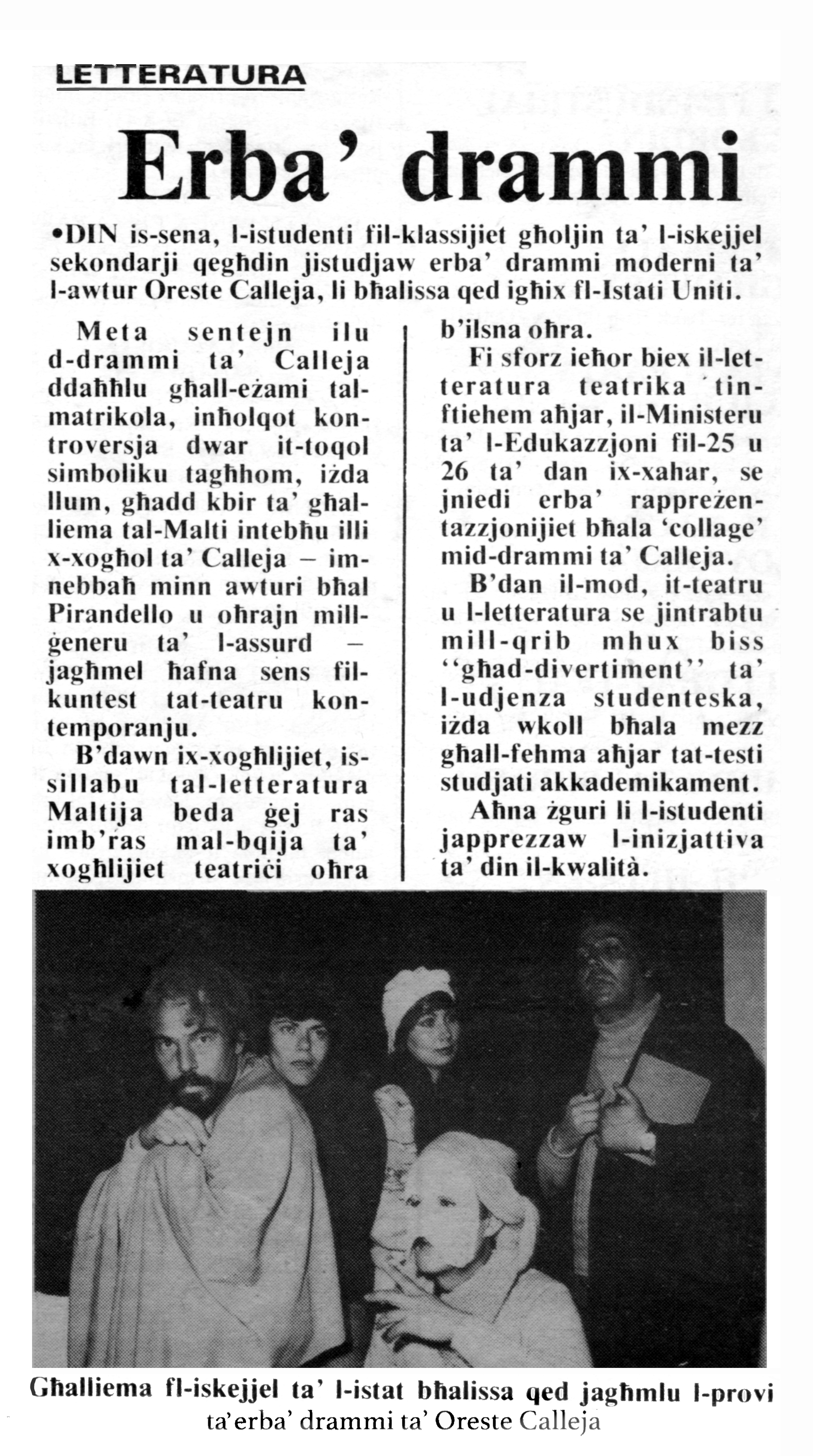 ORESTE CALLEJA NOTA BIJOGRAFIKA DRAMMI PUBBLIKAZZJONIJIET IL-MONOLOGI ARKIVJU |