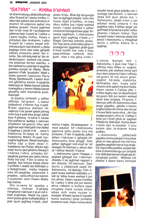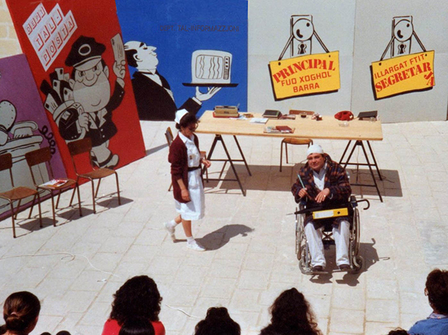 Fuq il-Palk: Philip Stilon: Skrivan, Dominic Said: Astronomu, flimkien ma' Michael Tabone, Manuel Cauchi u Yvonne Arqueros.