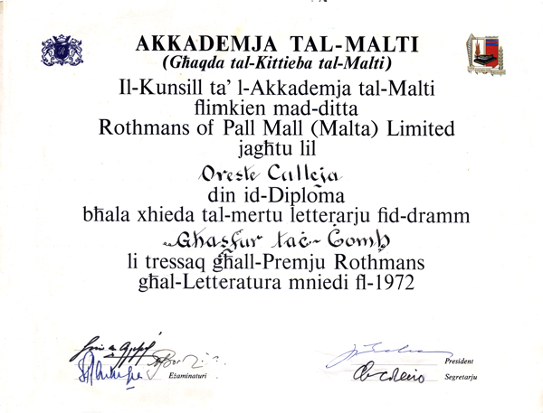 tas-Sittinjiet.) Oreste Calleja kien wieħed minn dawn il-kittieba li mill-bidu